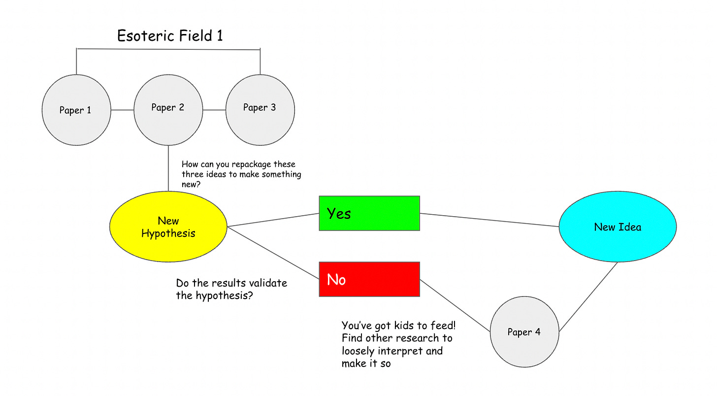 The current methods of knowledge creation practiced in academia and corporate R&D facilities follow very straightforward processes. Hypotheses are made around potential outcomes of an experiment based on previous knowledge, tested in a laboratory setting and then validated again against the pre-existing knowledge base. This is essentially how new ideas are rubber-stamped today. The dependence of this system on previous citation, often within a single field, fosters incrementalism.