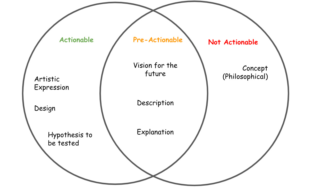 Beofre going deeper, a breakdown of the essential ingredients for idea-generation protocols. Taking the bolded wording from the definitions used above, we can divide the idea of the idea into varying levels of actionability from a product development perspective.
